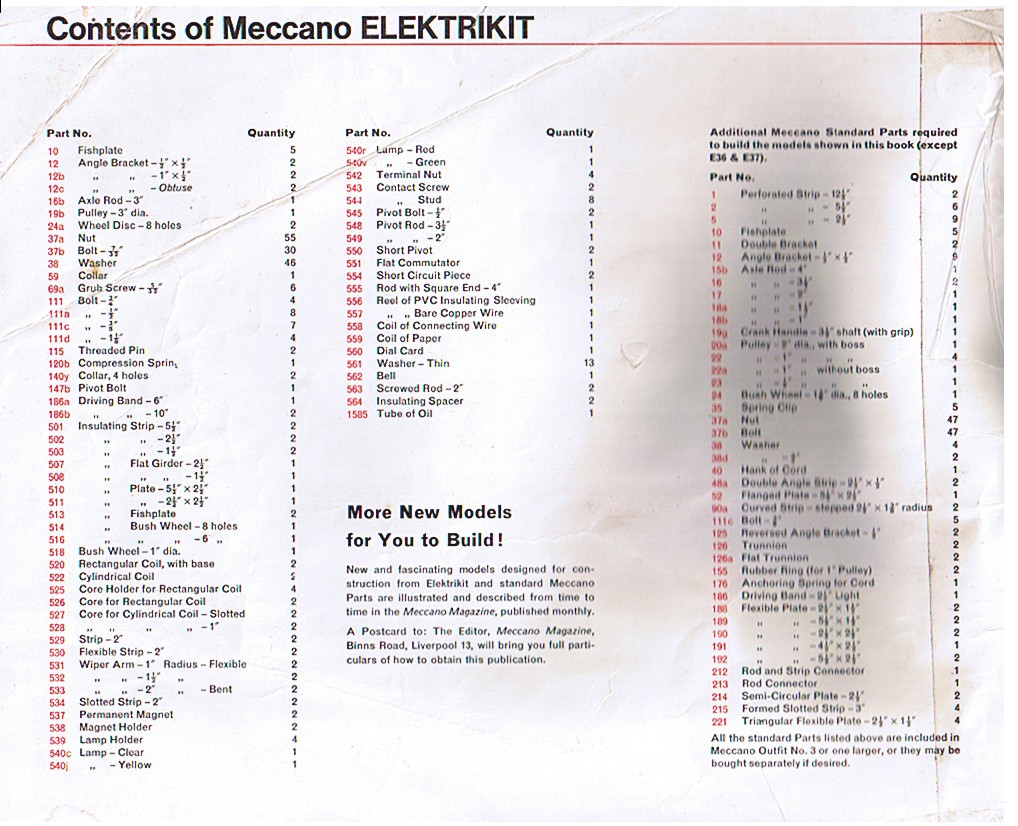 Meccano Elektrikit Set Manual |